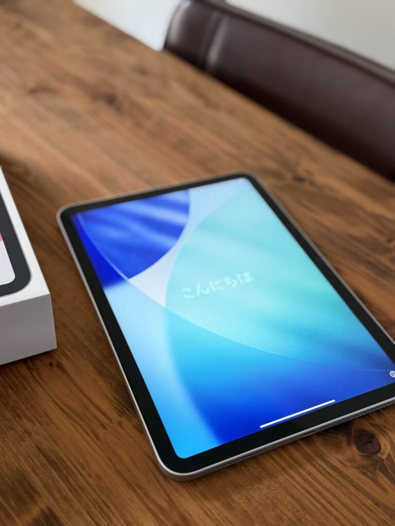 久しぶりのiPad買い替えで、古いものは、オフィスでアップルミュージック再生用くらいにしかなっていなかった。このiPadはMacBookのサブディスプレイとして使ったり、あとは本を読んだり、ガツガツ持ち運んで背面カバーもせずに傷だらけになるような使い方をしてみようと思う。(MacBookはケースに入れてソーっと持ち運んでいる)